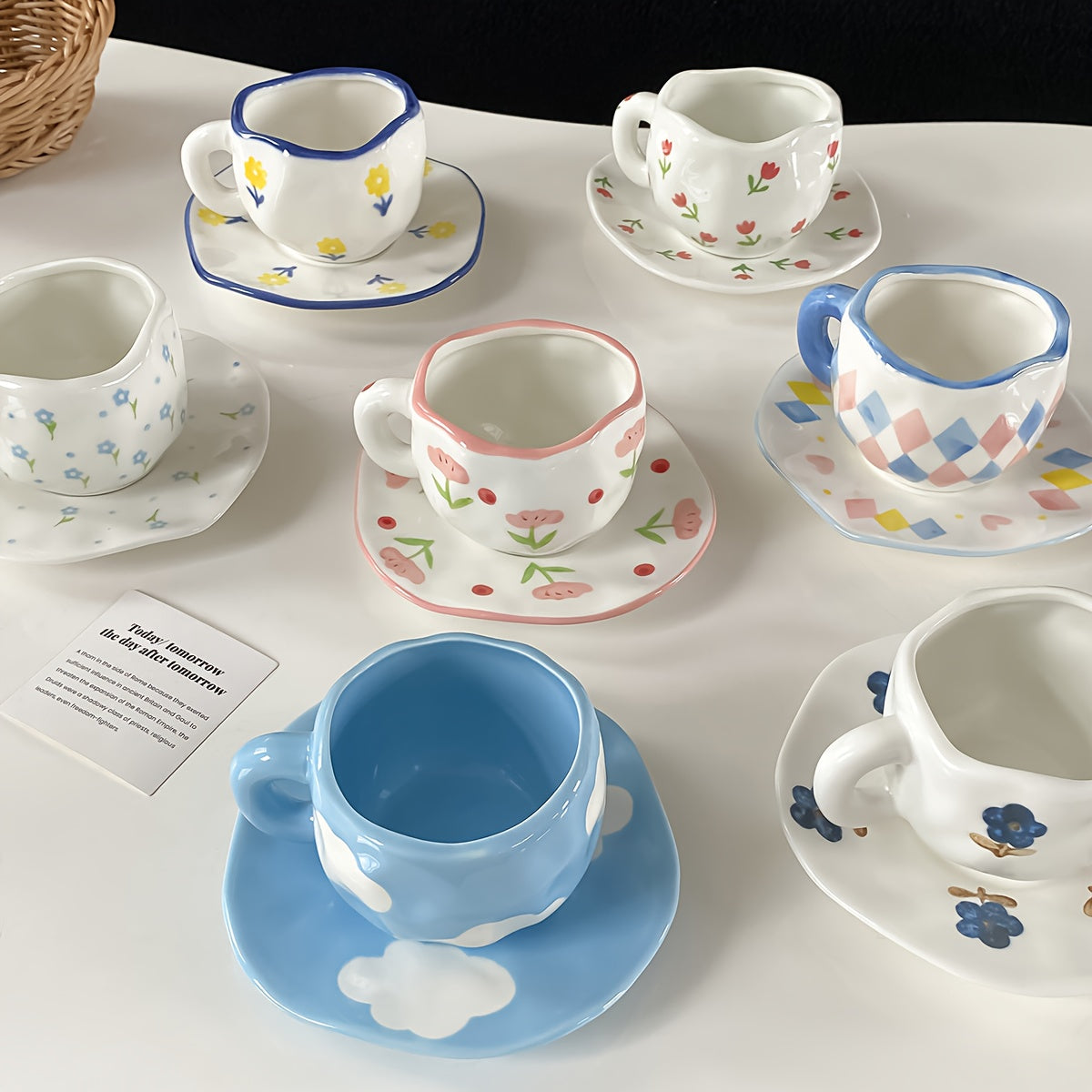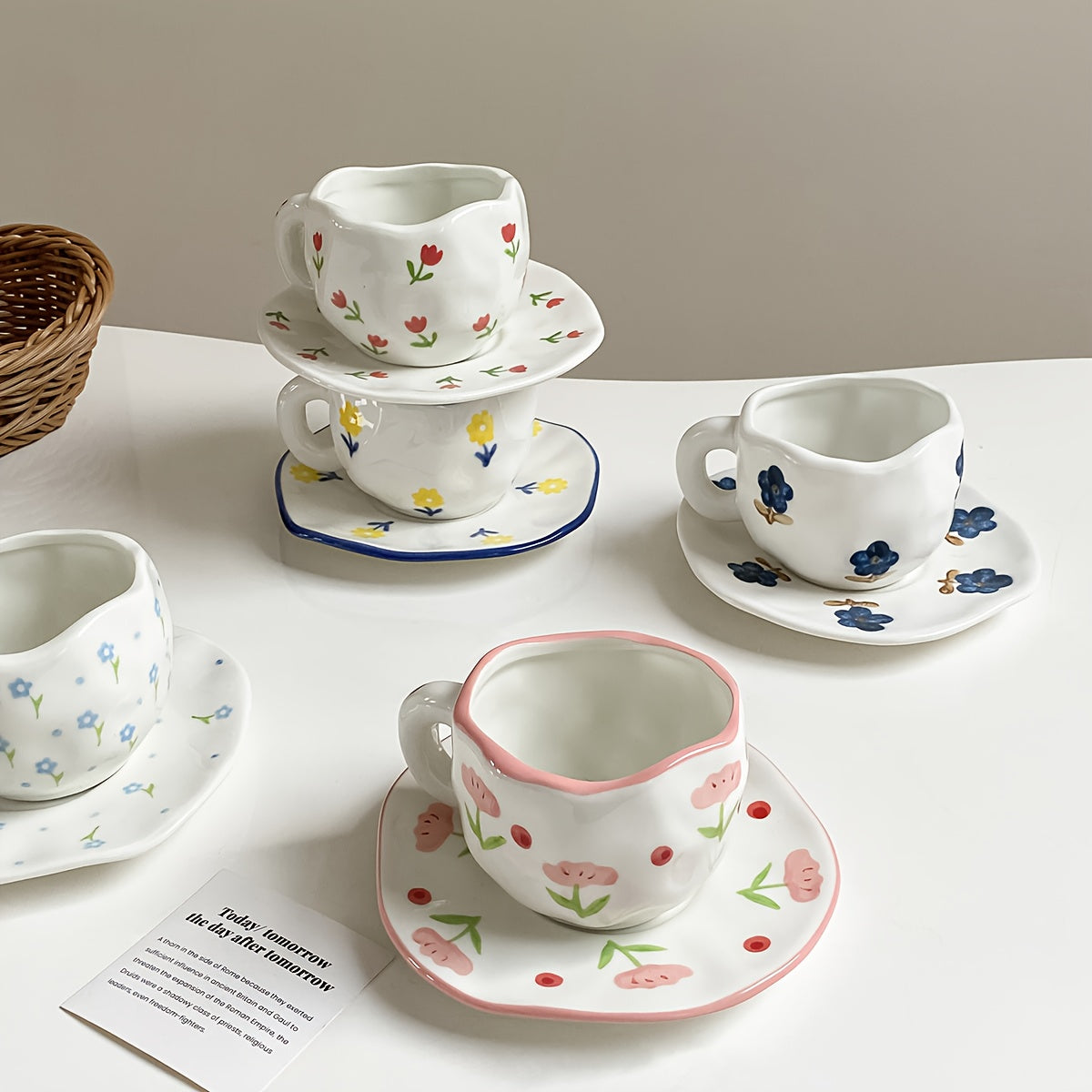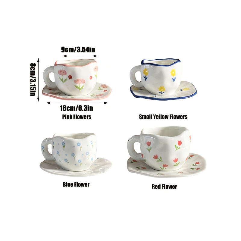 Handgetöpferte Kaffeetassen mit Untertasse – Floral Kollektion
