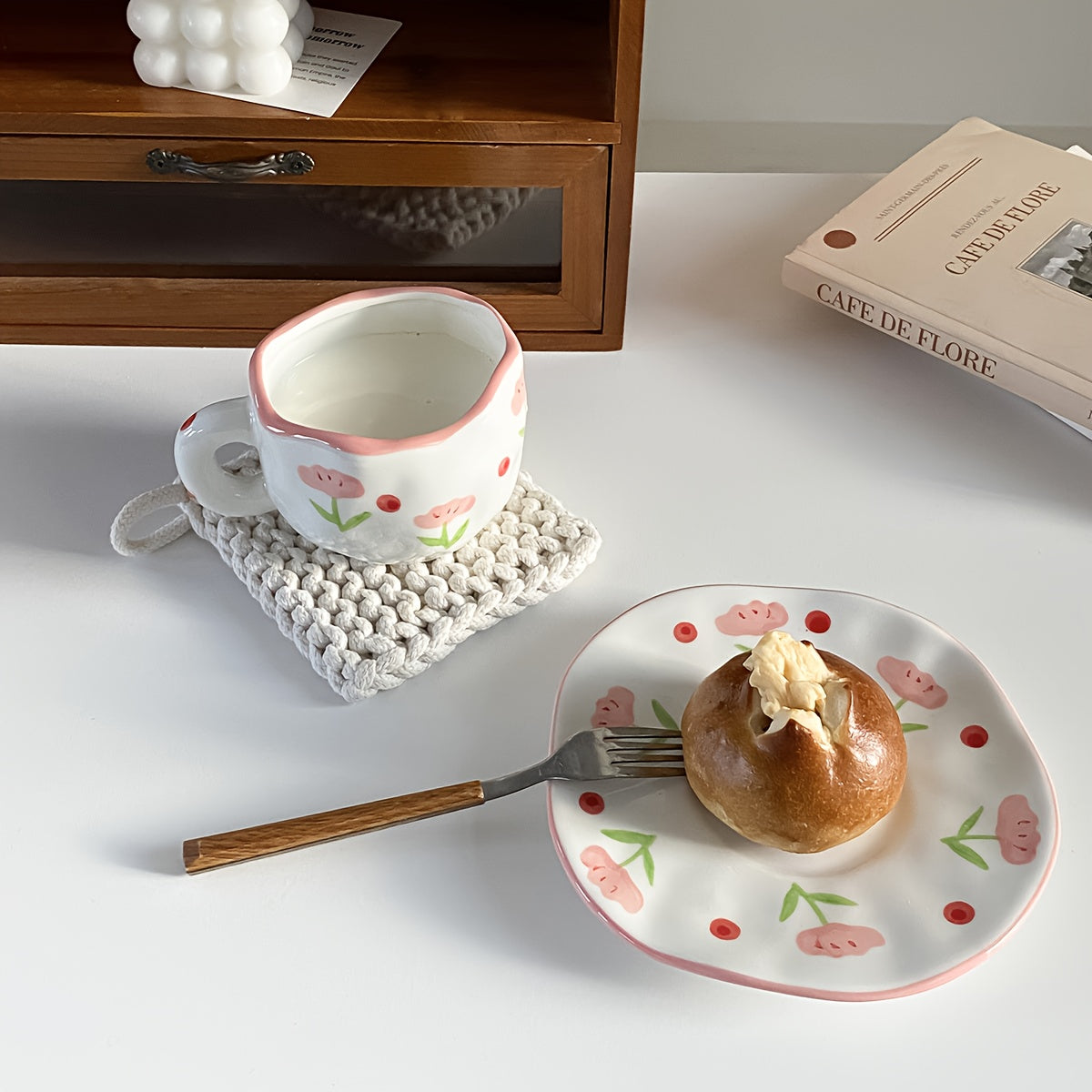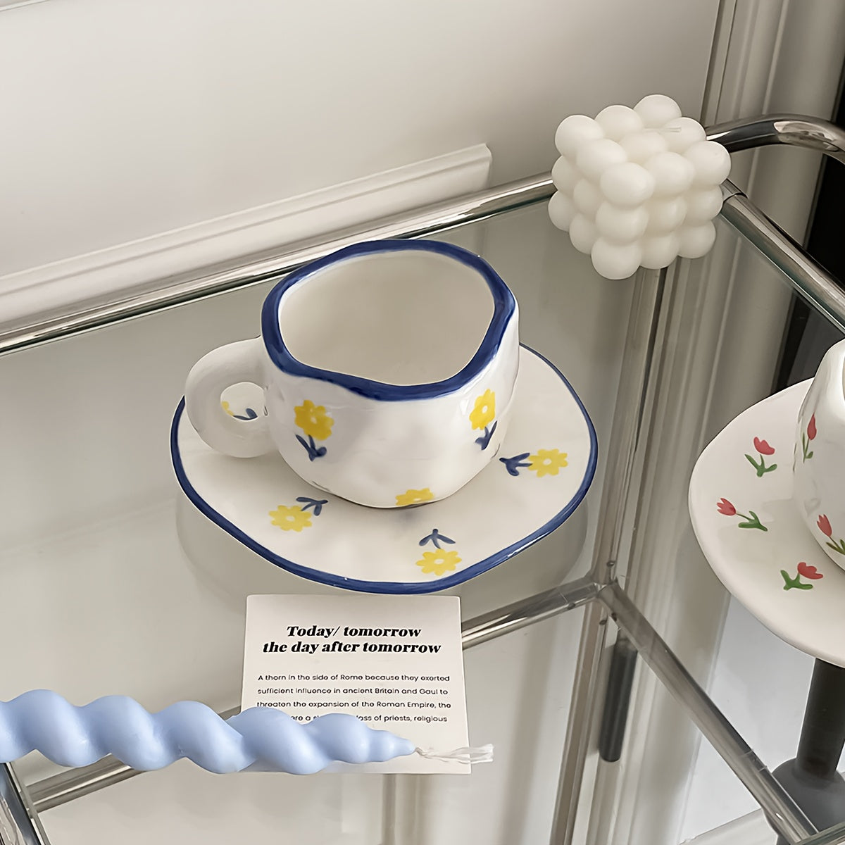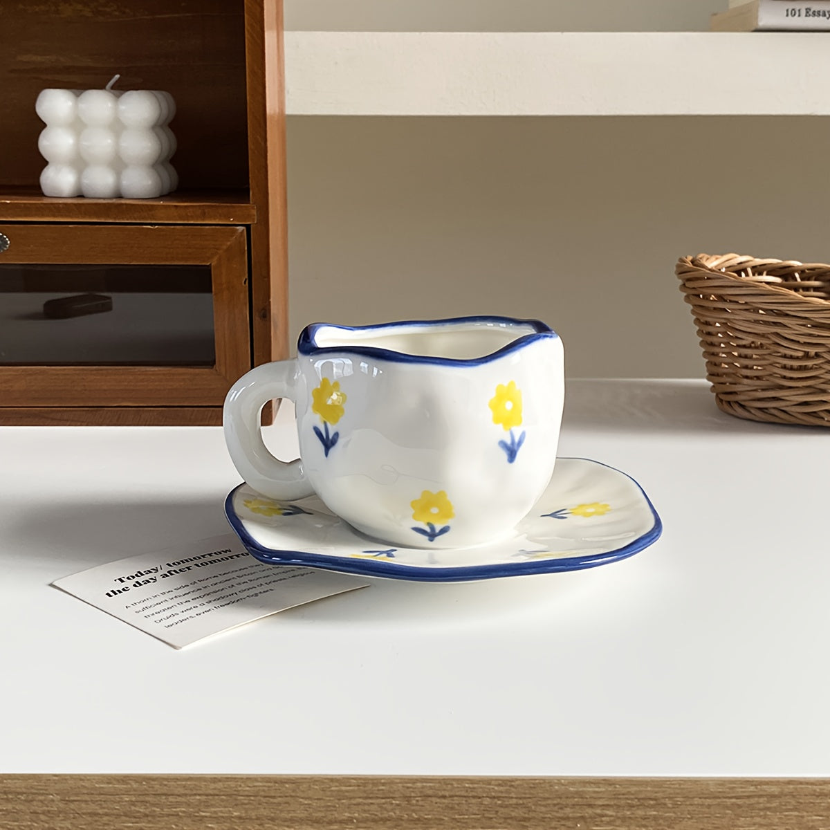 Handgetöpferte Kaffeetassen mit Untertasse – Floral Kollektion